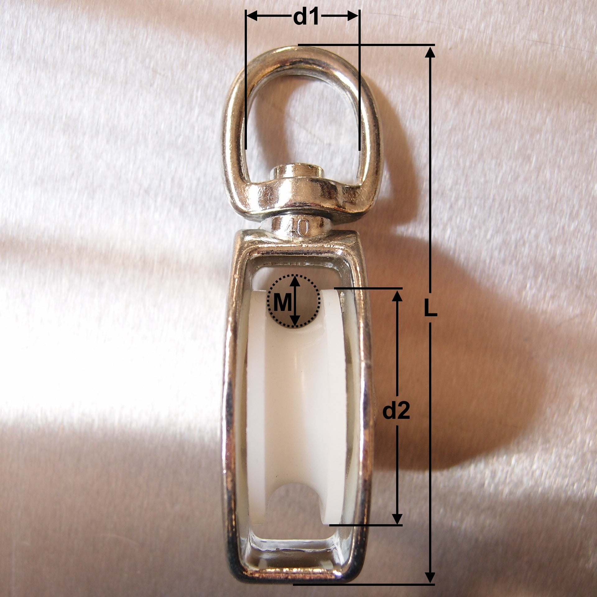 • The 'M' dimension in the specification table below indicates the diameter of rope that each pulley is suitable for.