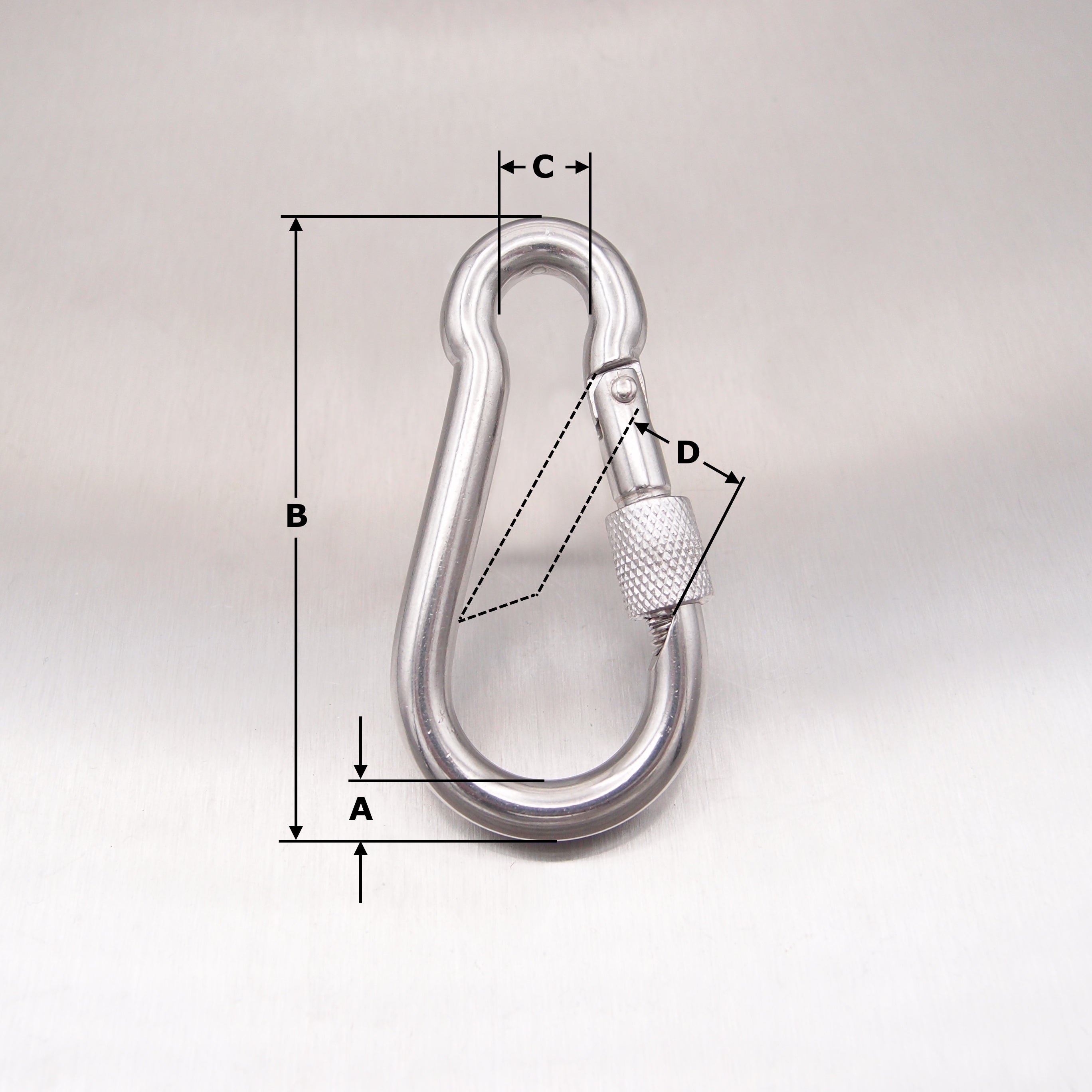 Stainless Steel Carbine Hooks with Screw Nut - Without Eyelet - AISI 316