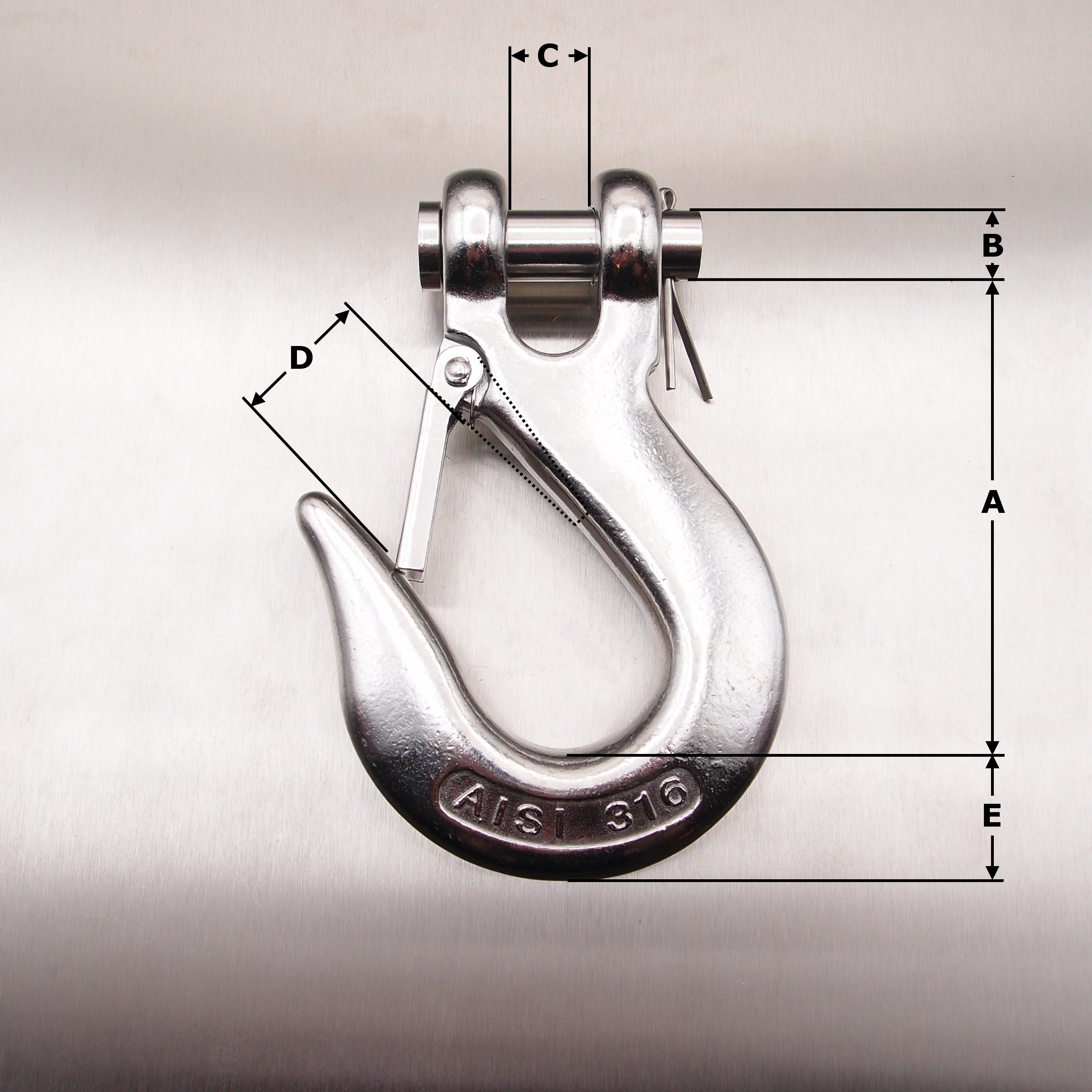 Stainless Steel Clevis Type Sling Hook with Safety Catch AISI 316